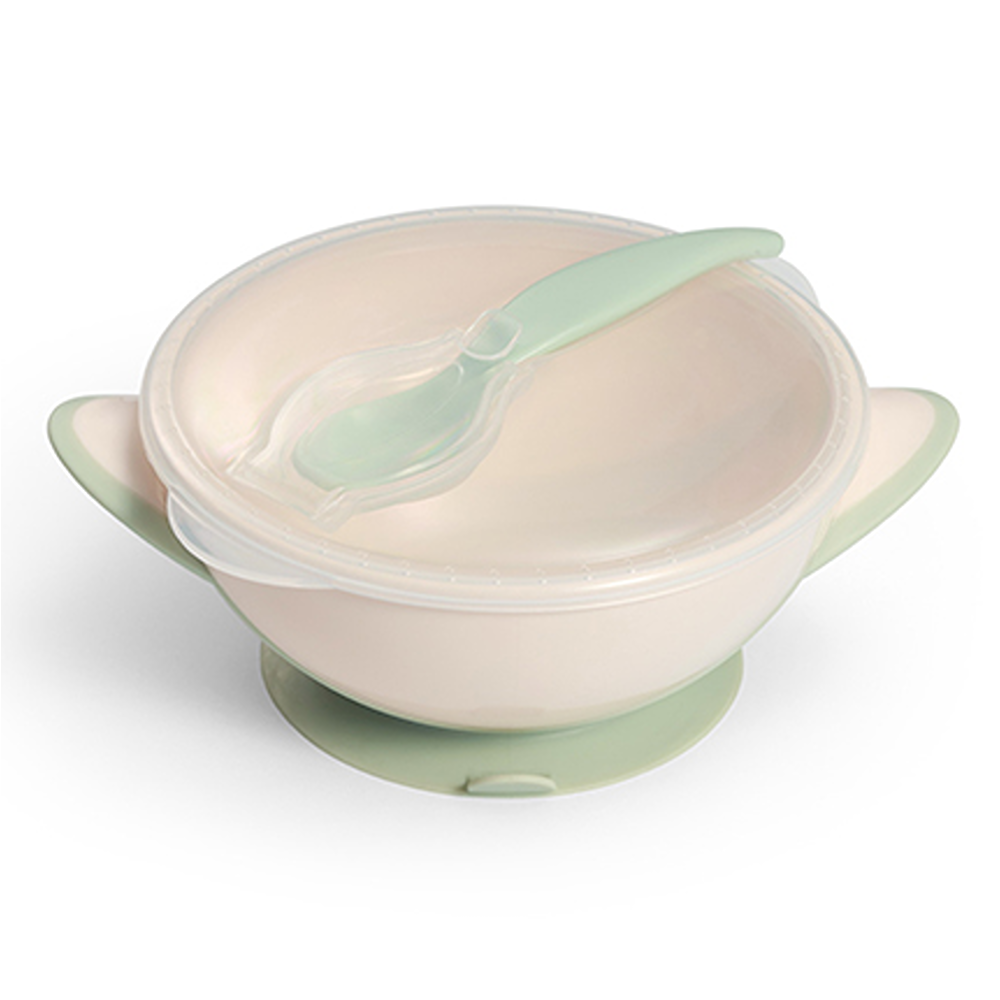 Beige Schüssel und Löffel mit Saugnapf