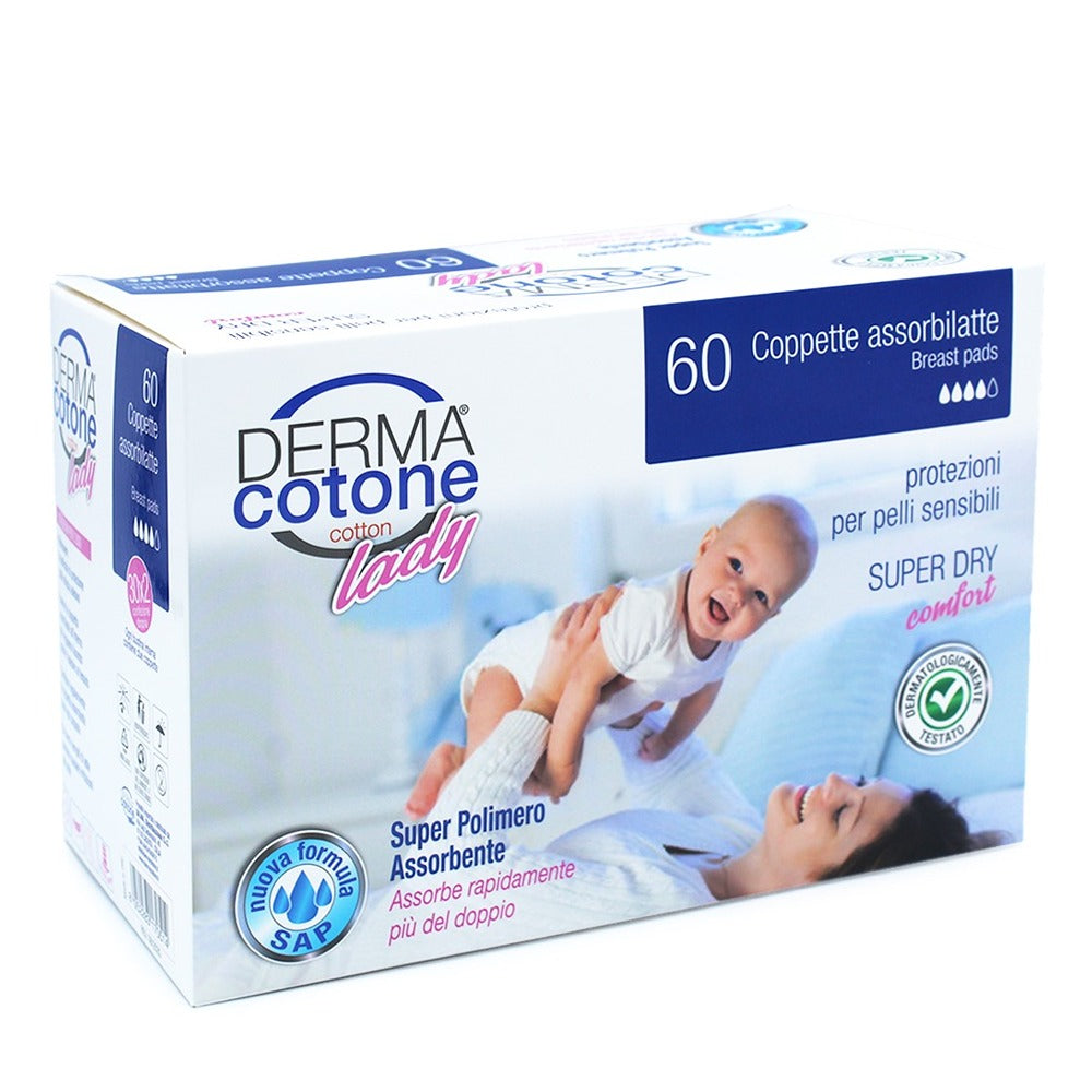 Le coppette assorbilatte Dermacotone sono realizzate con l’innovativo s.a.p. (super polimero assorbente) che consente di assorbire rapidamente il latte in eccesso riuscendo a contenere una quantita’ maggiore pari al doppio delle coppette comuni. Composte da materiale interno morbido e delicato.