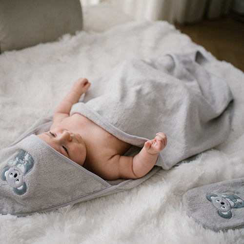 L'asciugamano assorbe perfettamente l'umidità e protegge efficacemente il bambino dal freddo.