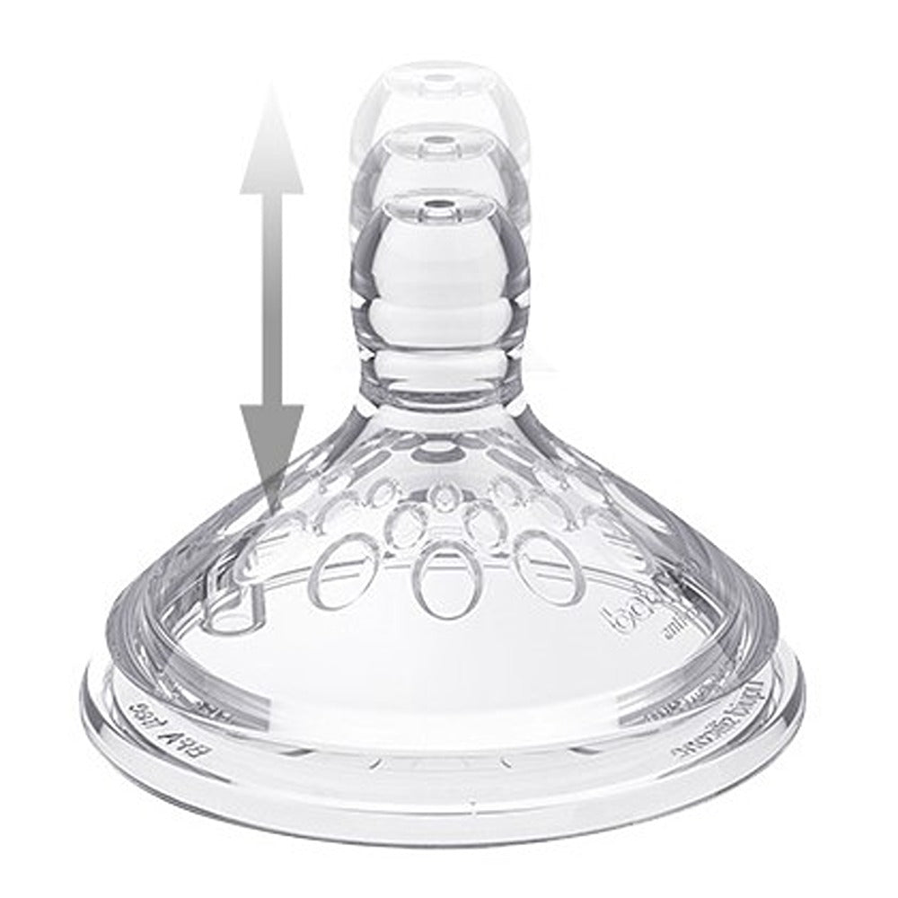 Una tettarella anticolica a flusso rapido, molto morbida e flessibile. Perfetta per somministrare liquidi come latte, acqua e tè. La sua struttura unica è morbida come il seno materno.