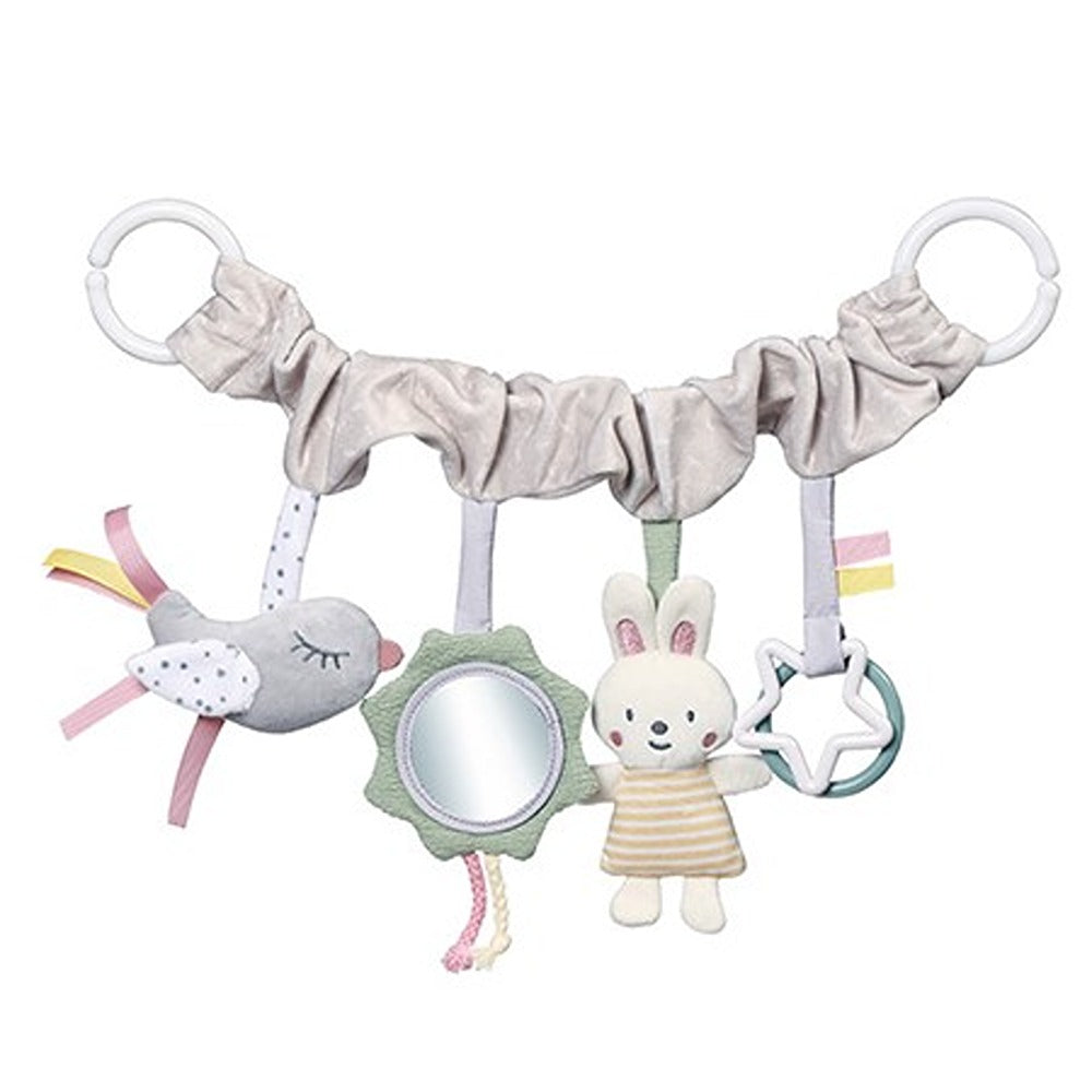 Grazie alla pratica impugnatura universale, puoi agganciare il giocattolo al passeggino, al seggiolino auto e alla culla.