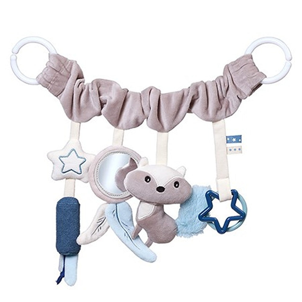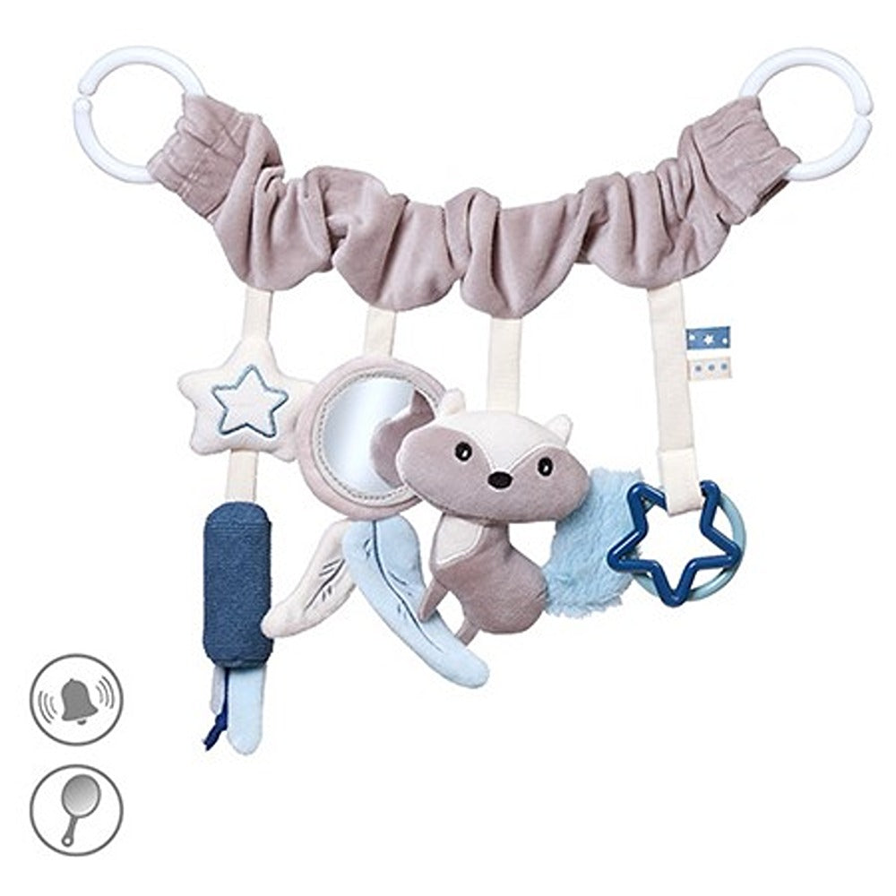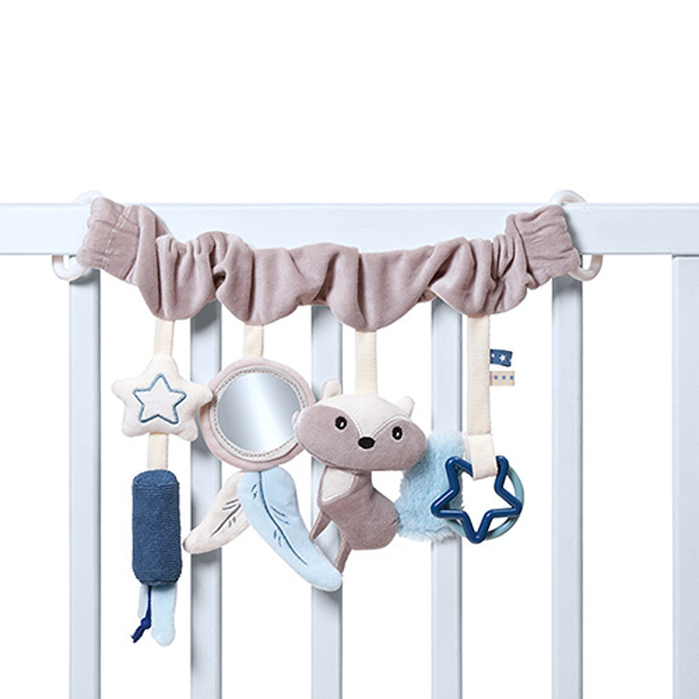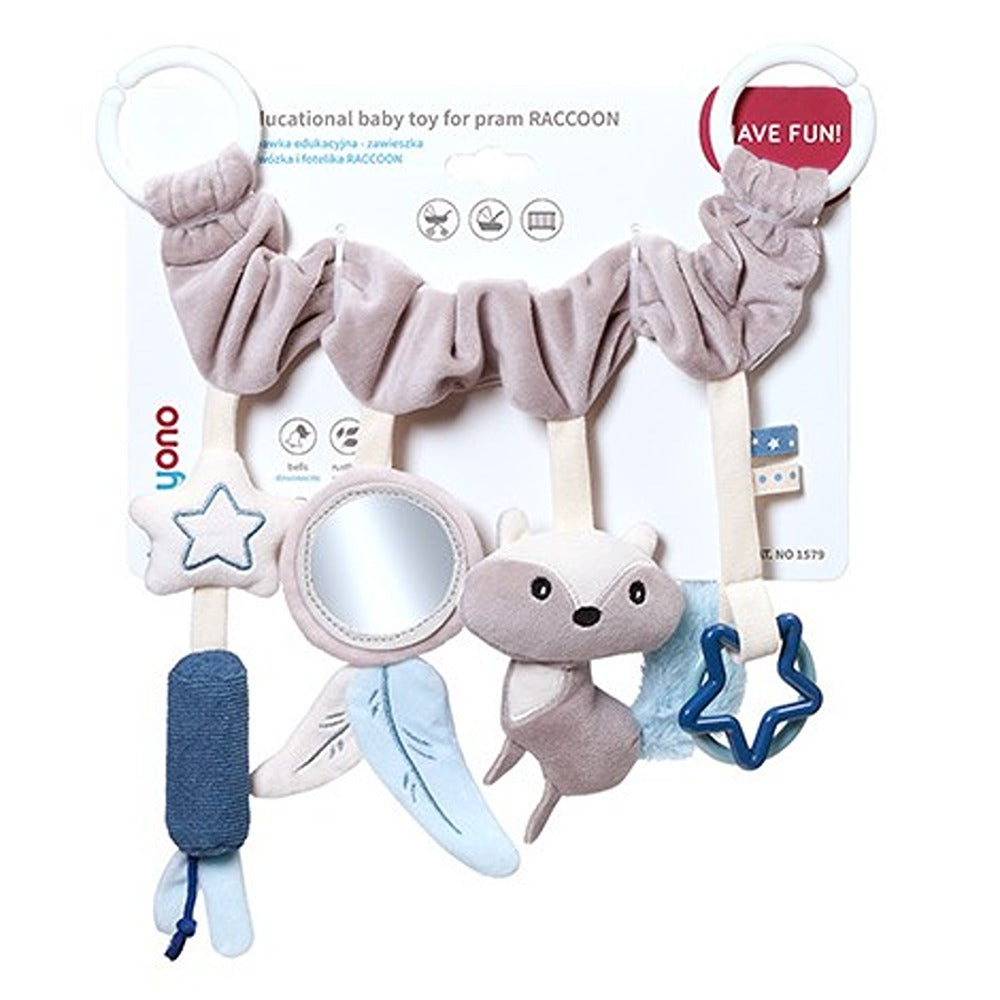 Il giocattolo educativo da appendere a forma di procione diversificherà il mondo del tuo bambino e lo aiuterà a sviluppare la vista, l'udito e le capacità motorie. Tutto ciò che devi fare è attaccarlo al passeggino, alla culla o al seggiolino auto per intrattenere il tuo piccolo durante le passeggiate e i viaggi. L'articolo da appendere, rivestito in un materiale piacevole al tatto, è dotato di un grazioso procione con una coda frusciante e graziosi campanellini . Il tuo bambino troverà anche uno specchio, un anello e una stella . I pezzi accuratamente selezionati sono piacevoli al tatto e attirano l'attenzione del bambino attraverso le loro diverse fantasie. Permettono al tuo bambino di scoprire il mondo e migliorare le sue capacità manuali attraverso il gioco.