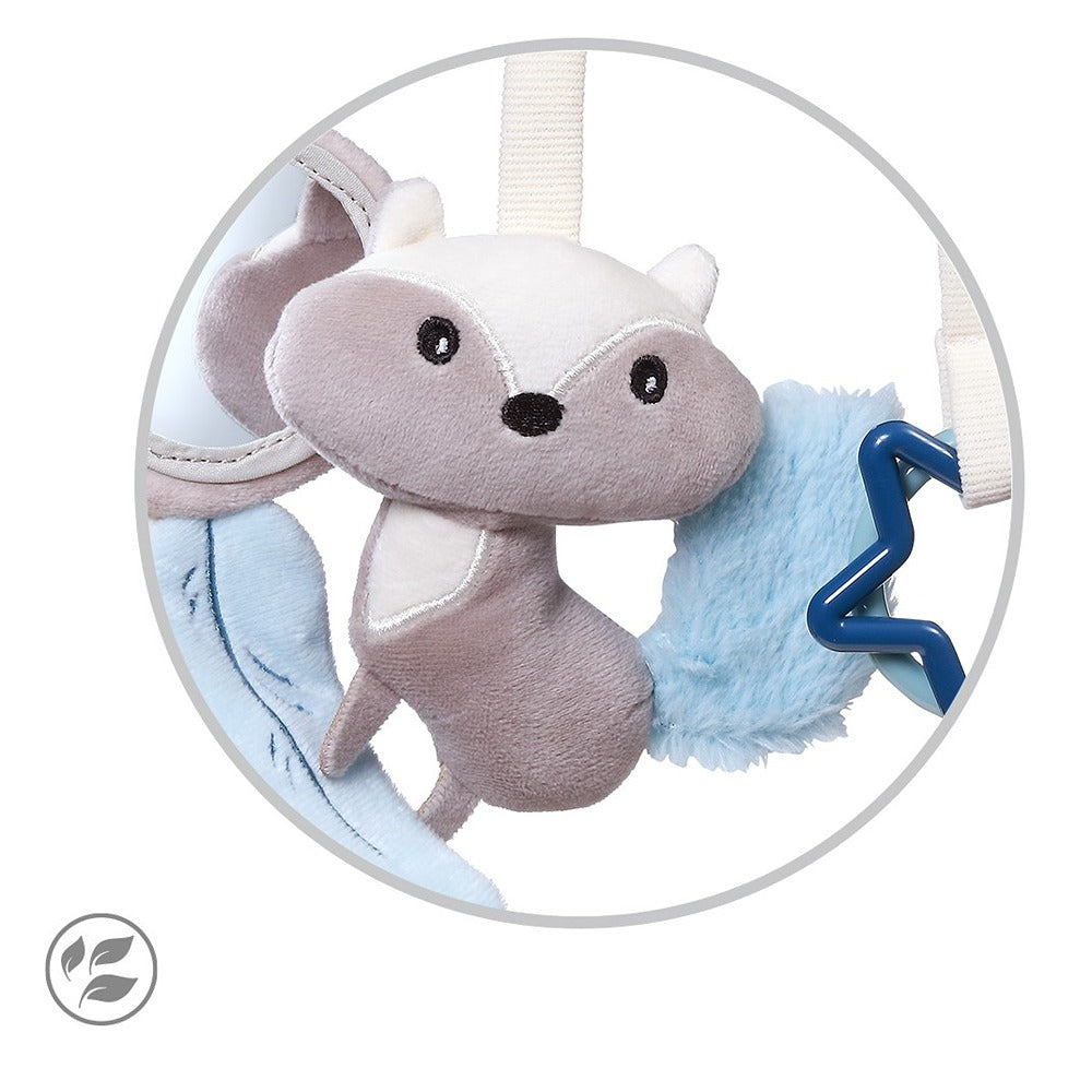 Il fruscio degli oggetti nella coda e nelle foglie del procione incuriosirà sicuramente il tuo bambino e catturerà la sua attenzione.