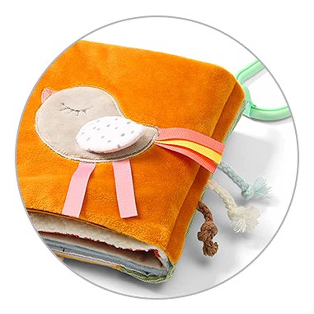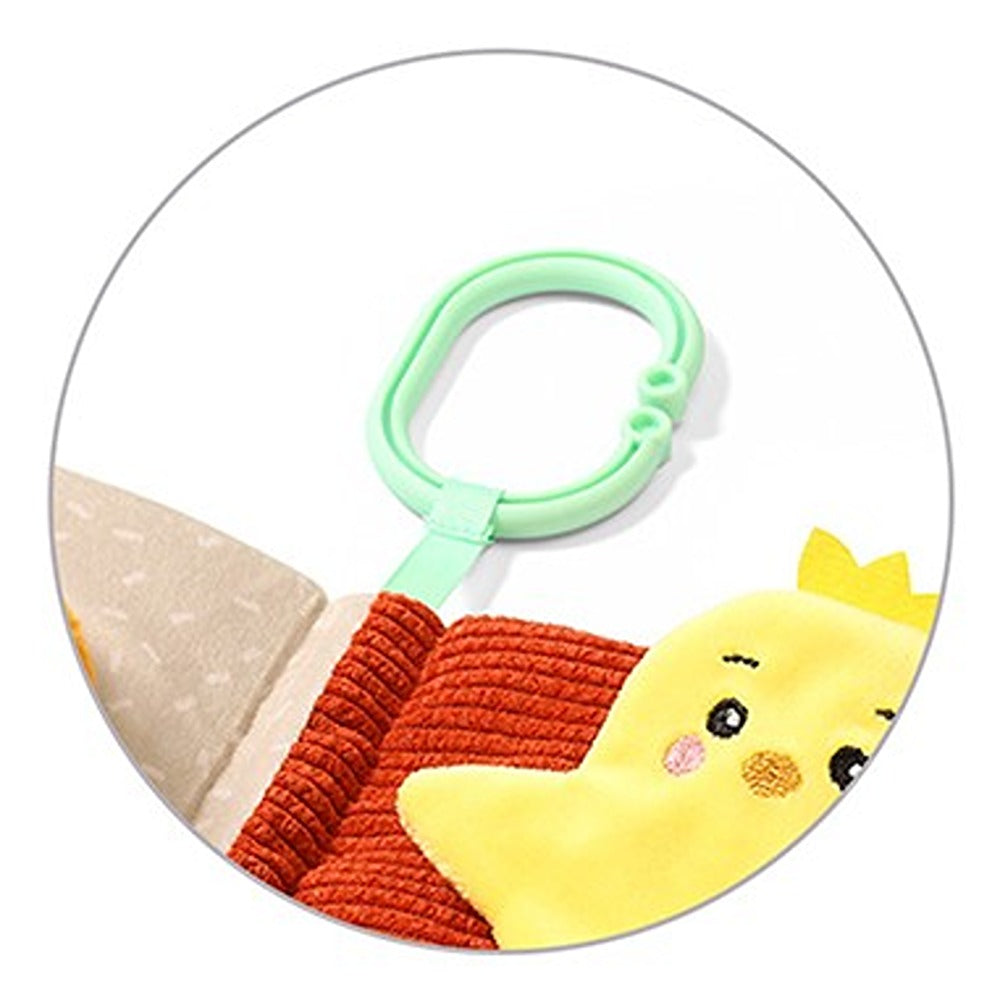 Il libro è dotato di un pratico gancio per appenderlo facilmente alla culla, al passeggino, al seggiolino auto e altro ancora.