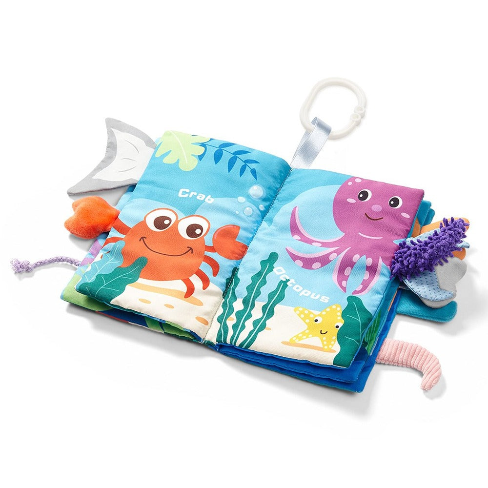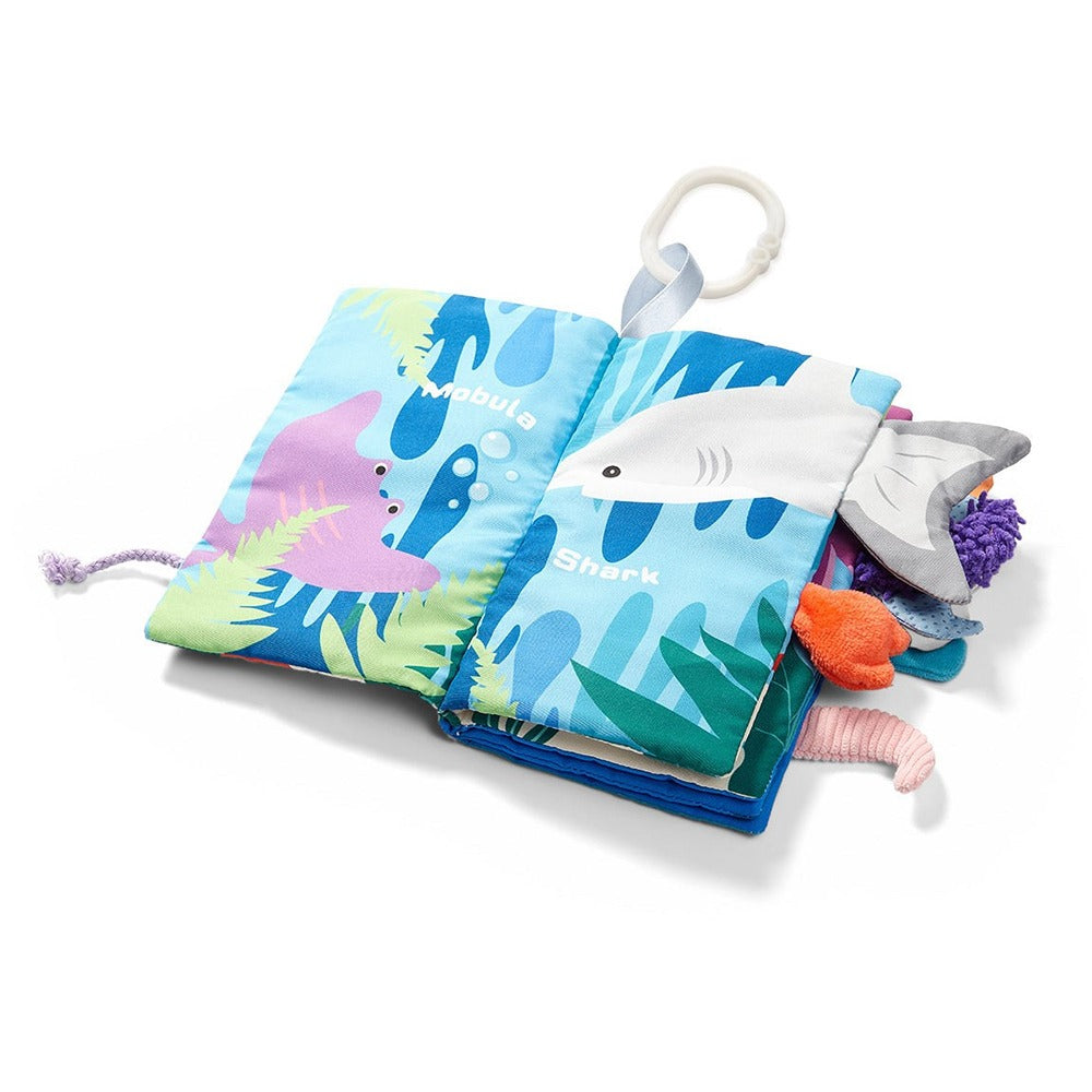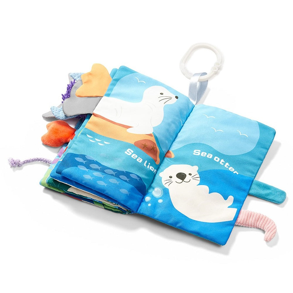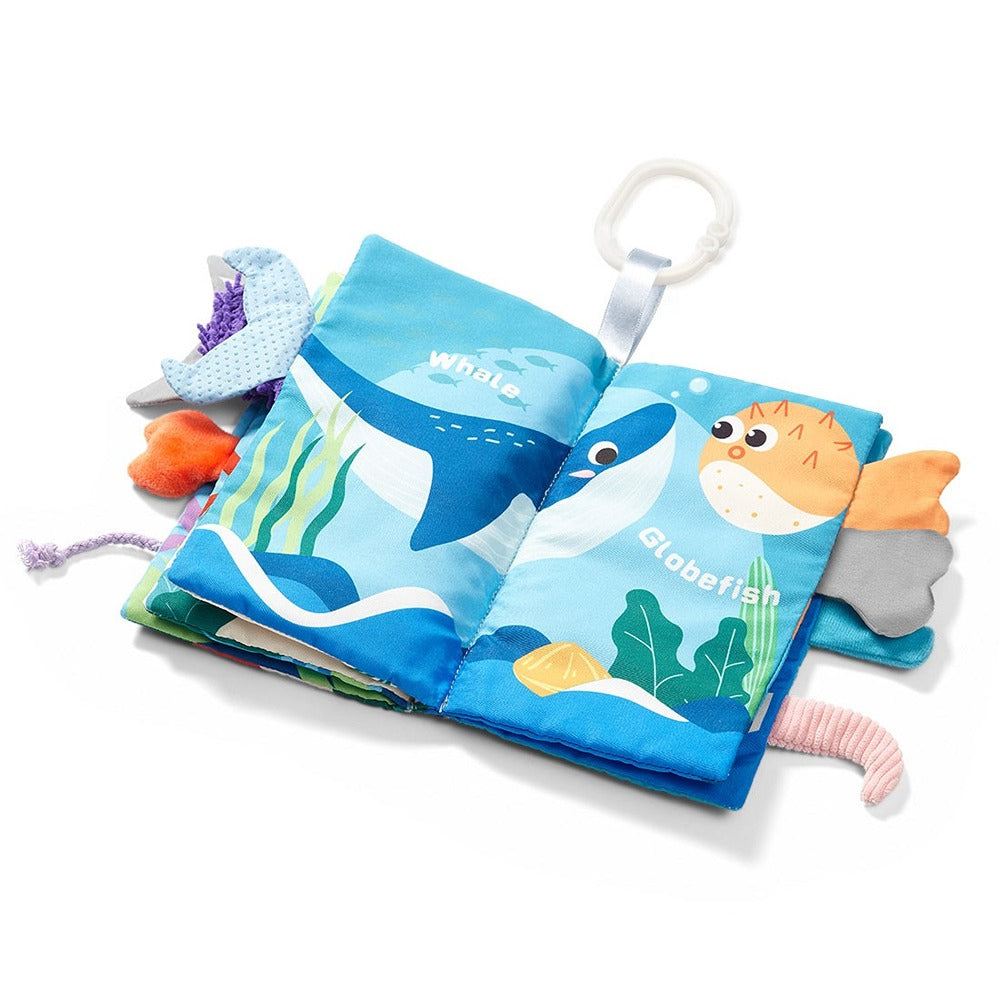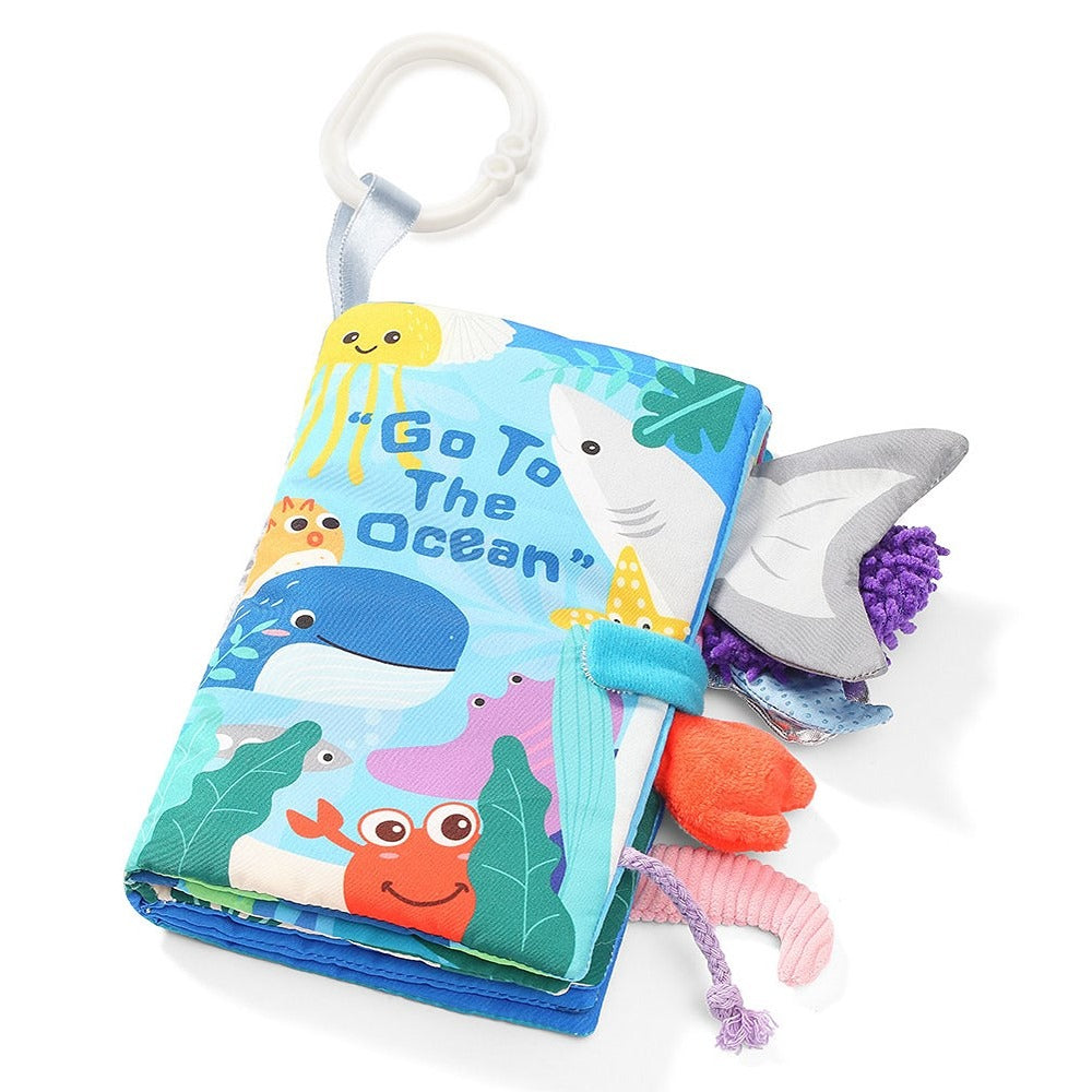 Il libro "GO TO THE OCEAN" è stato creato pensando allo sviluppo sensoriale dei bambini. Presenta il mondo sottomarino in modo interessante. Grazie alle code che sporgono oltre il bordo del libro, permette al bambino di studiare diverse texture dei materiali.