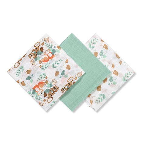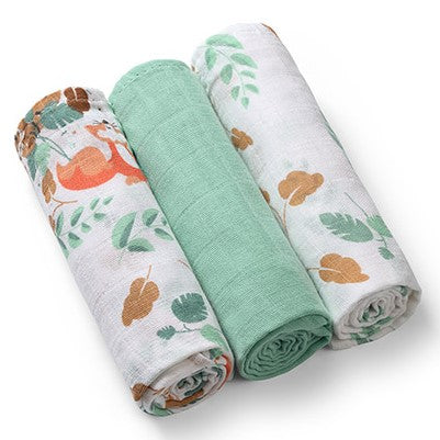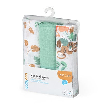 Le mussole super morbidi sono un must-have nel primo corredino di un bambino: sono utili per neonati e bambini piccoli. La muslin è un tessuto a doppio strato, 100% cotone, estremamente morbido al tatto e insolitamente traspirante, quindi i pannolini in muslin possono essere utilizzati fin dal primo giorno di vita del bambino: per avvolgerlo o coprirlo, oppure come fasciatoio, lenzuolo o asciugamano da bagno. Sono comodi come copertina durante l'allattamento o puoi metterli sulla spalla quando devi fargli fare il ruttino. Confezionati in una scatola trasparente con chiusura in velcro.
