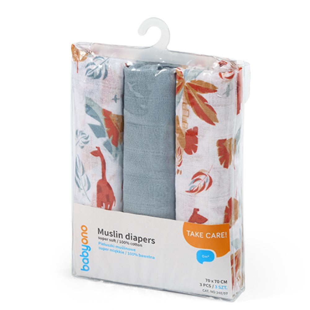 Le mussole super morbidi sono un must-have nel primo corredino di un bambino: sono utili per neonati e bambini piccoli. La muslin è un tessuto a doppio strato, 100% cotone, estremamente morbido al tatto e insolitamente traspirante, quindi i pannolini in muslin possono essere utilizzati fin dal primo giorno di vita del bambino: per avvolgerlo o coprirlo, oppure come fasciatoio, lenzuolo o asciugamano da bagno. Sono comodi come copertina durante l'allattamento o puoi metterli sulla spalla quando devi fargli fare il ruttino. Confezionati in una scatola trasparente con chiusura in velcro.