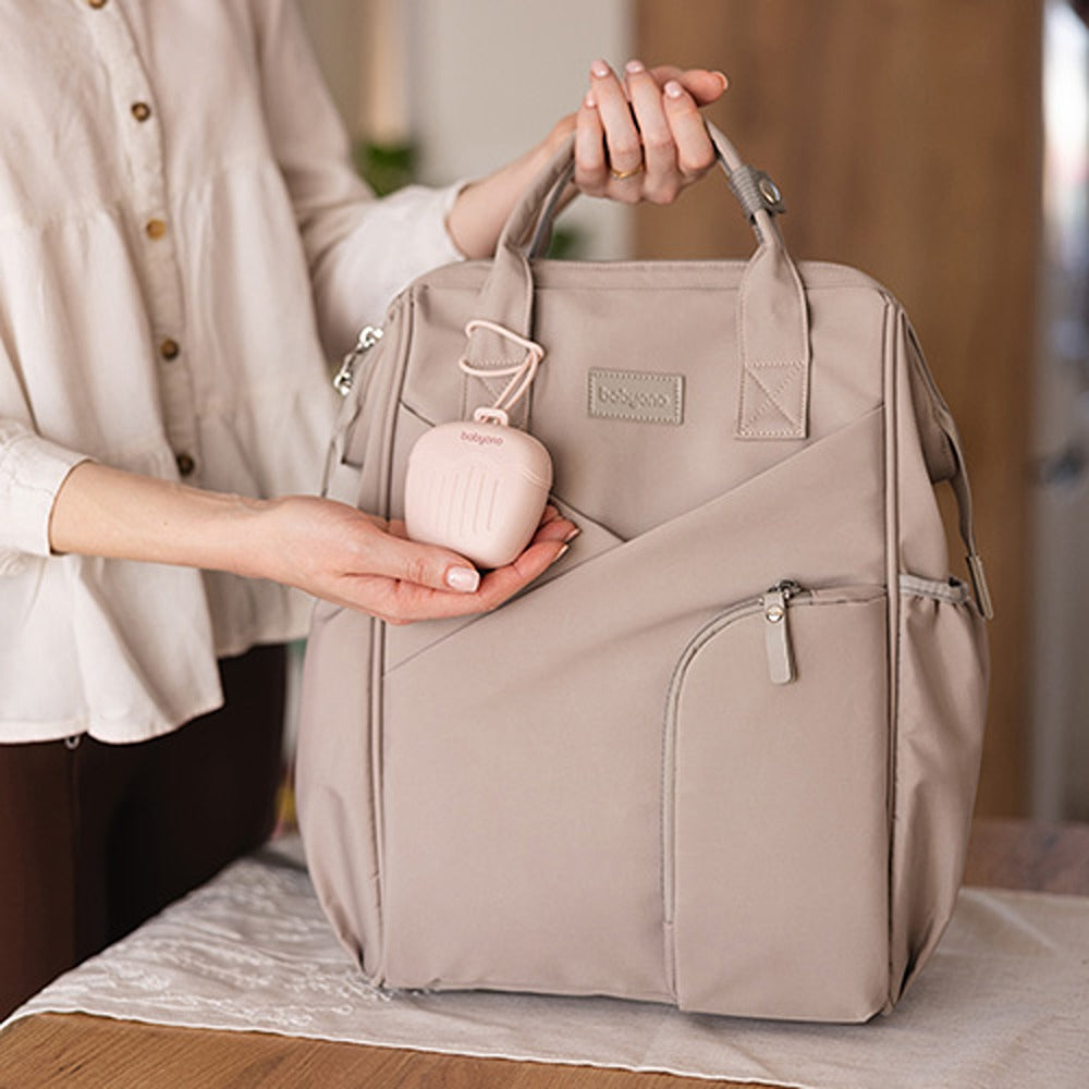 Il porta-succhietto è dotato di un cinturino lungo e flessibile che consente di agganciarlo a una borsa, uno zaino, al maniglione del passeggino o al telaio del lettino. Non dovrai più cercare il succhietto in borsa! Il prodotto sarà sempre a portata di mano.