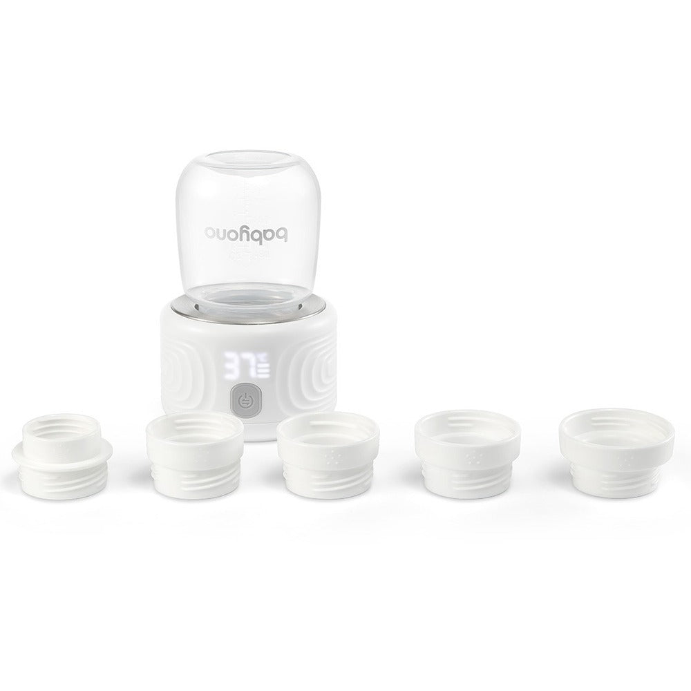 Lo scaldabiberon è dotato di 5 adattatori sostituibili, quindi è adatto alla maggior parte dei biberon disponibili sul mercato.