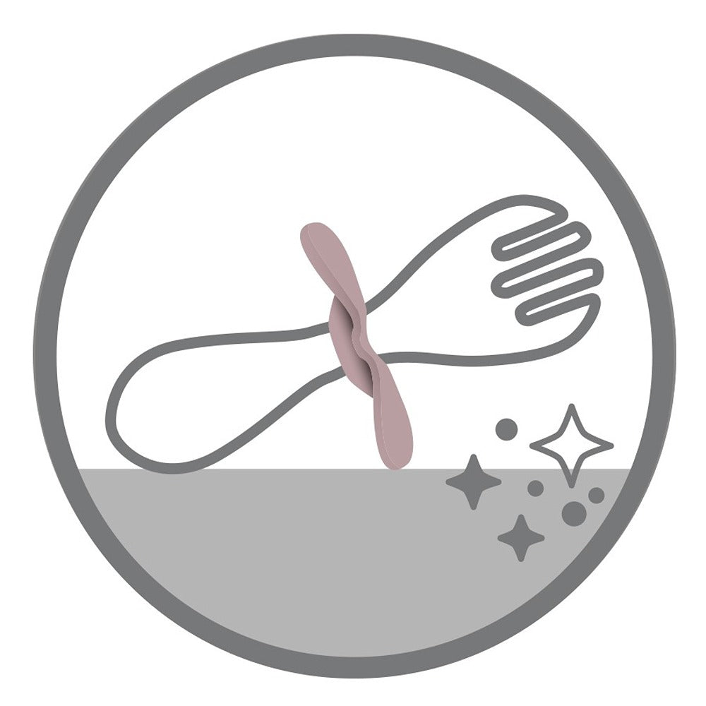 L'ampio manico arrotondato si adatta perfettamente alla mano del bambino, facilitandogli l'apprendimento a mangiare con le posate.