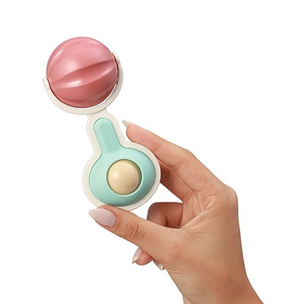 Muovere il sonaglio favorisce lo sviluppo delle capacità motorie nei bambini. Si rivela utile anche per la coordinazione occhio-mano e per lo spostamento degli oggetti.