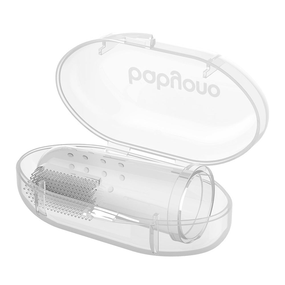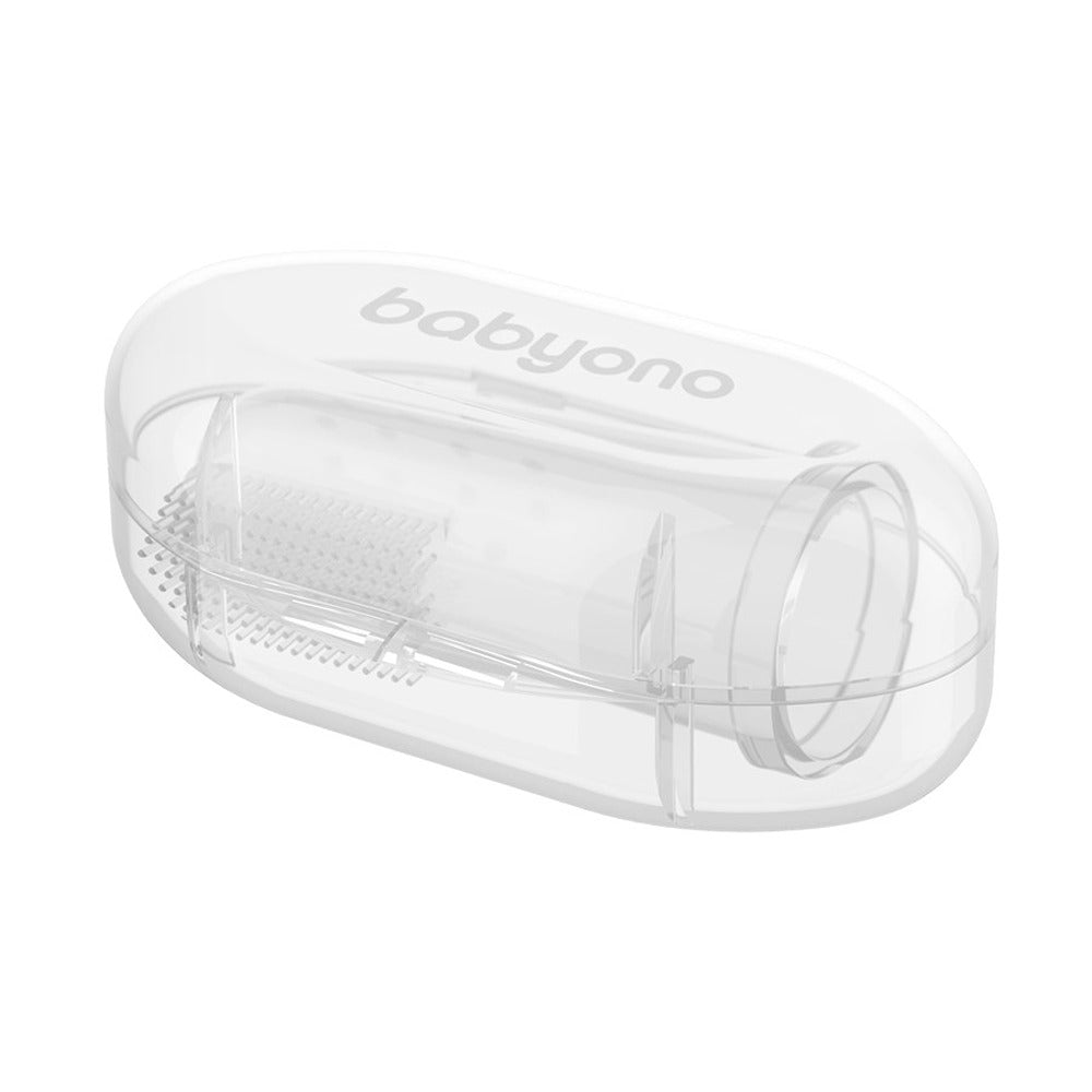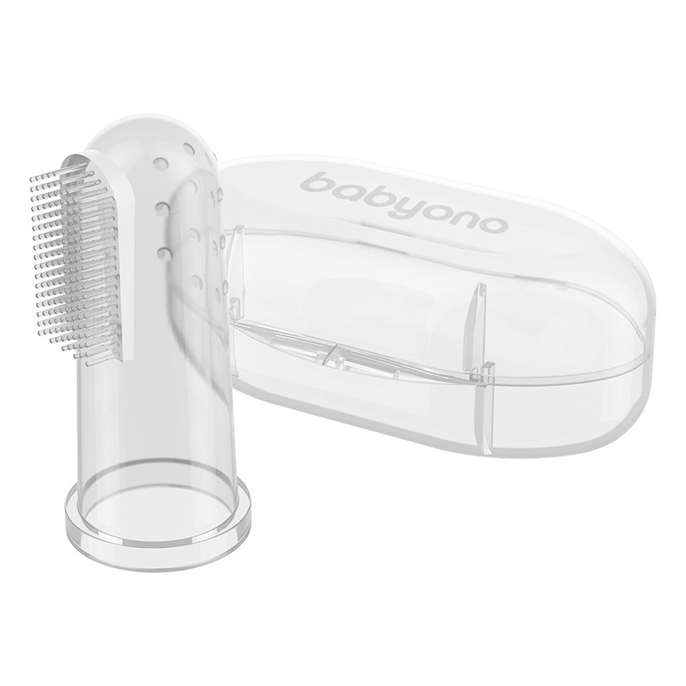 L'igiene orale del bambino dovrebbe essere curata fin dai primi giorni di vita. Gengive pulite sono una delle condizioni per avere denti sani. La soluzione migliore è il primo spazzolino da denti: uno speciale rivestimento sul dito del genitore. Il prodotto presenta delicate sporgenze su un lato e una spazzola in materiale morbido sull'altro. Massaggia delicatamente le gengive e porta sollievo al bambino. Lo spazzolino è dotato di un astuccio in cui è possibile riporre il prodotto in modo sicuro e igienico. È realizzato in plastica sicura che non contiene bisfenolo A.